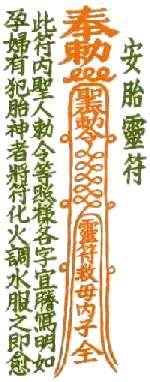 3.5 According to the ancient alamanac, this charm is used to protect a pregnant lady by burning the charm and drinking the charm in a glass of cold water:-
